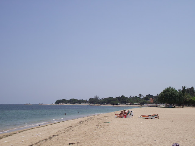 Второй конфуз, Санур. Это можно сказать, рай для тех кто хочет быть рядом с цивилизацией, но побольше тишины. Ибо Санур это пример тихого места, где лишь бары и рестораны работают до поздна, разумеется кутежа и т.п. развлечений там не найти. Скука там гиблая и тем более без Интернета. Потому мы каждый вечер на такси за 5 баксов доберались до Куты, бродили по шумным улицам тусовки, затаривались барахлишком в Матахари, так как помнили, что там есть офигенная одежда местного производства уровня, которой в Таиланде нет даже, сидели в Инет кафешках и вообще развлекались. Потом так же обратно возвращались.